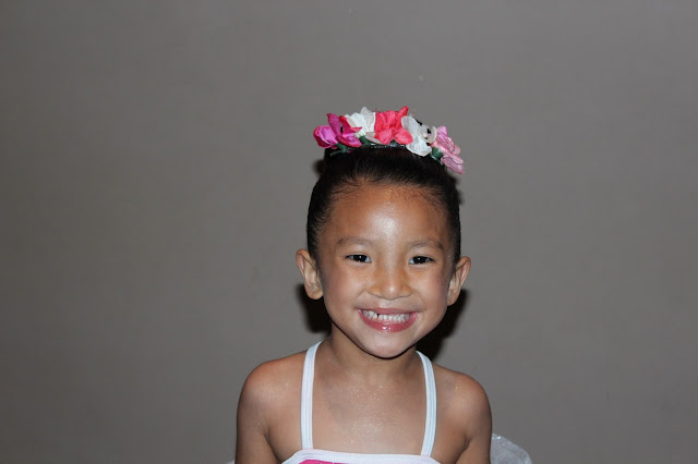 I've been dreading trying to get her hair up in that bun thingy for weeks. It took three tries but I'm proud of the final results...